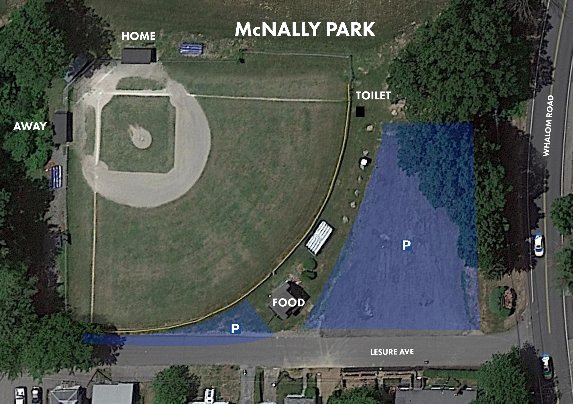 - There is a large parking lot in center and left field, with additional parking along Right field fence on Lesure Ave.