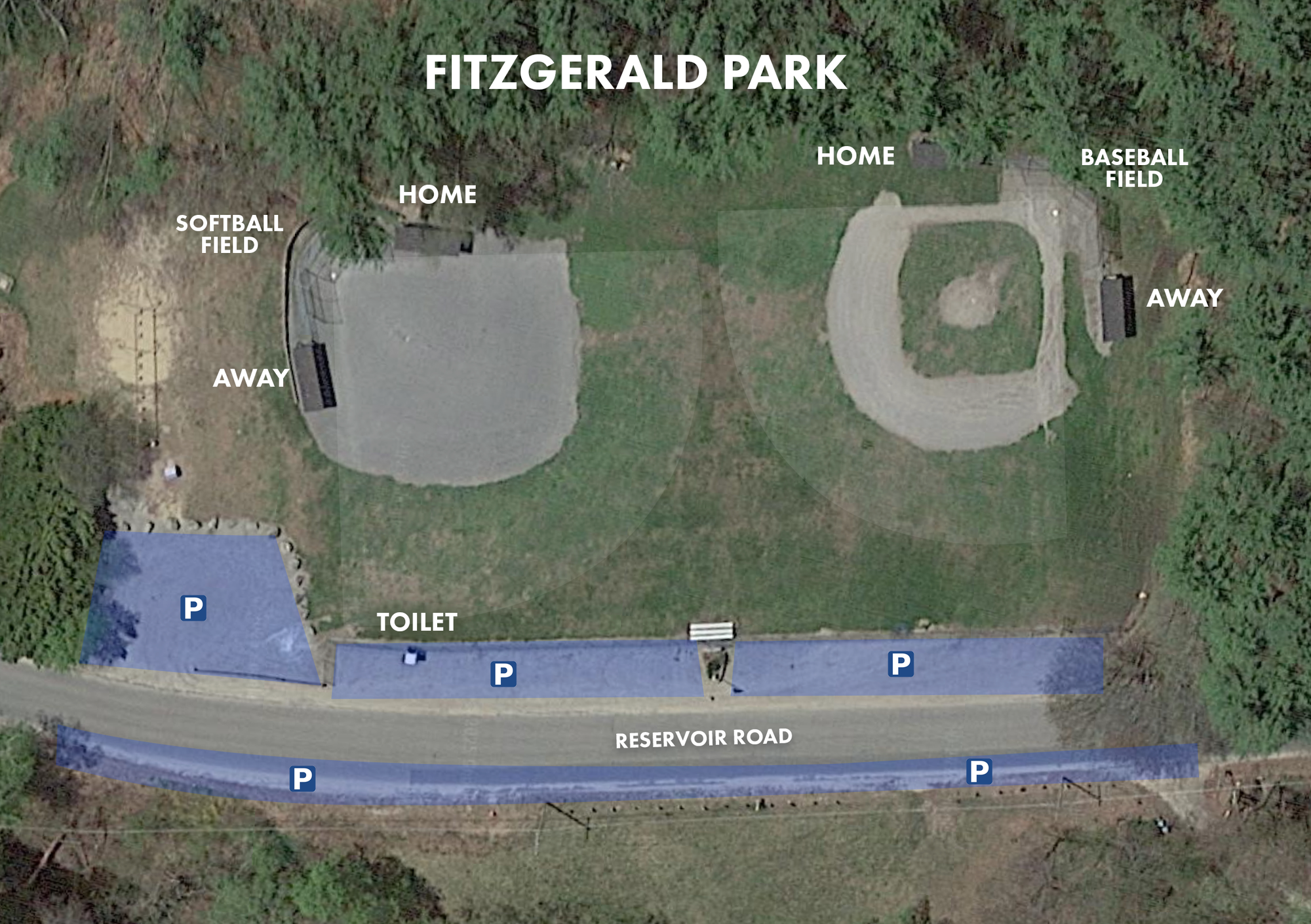 - There is a small parking lot next to the softball field, with additional parking along the outfield fence and along the opposite side of Reservoir Road.